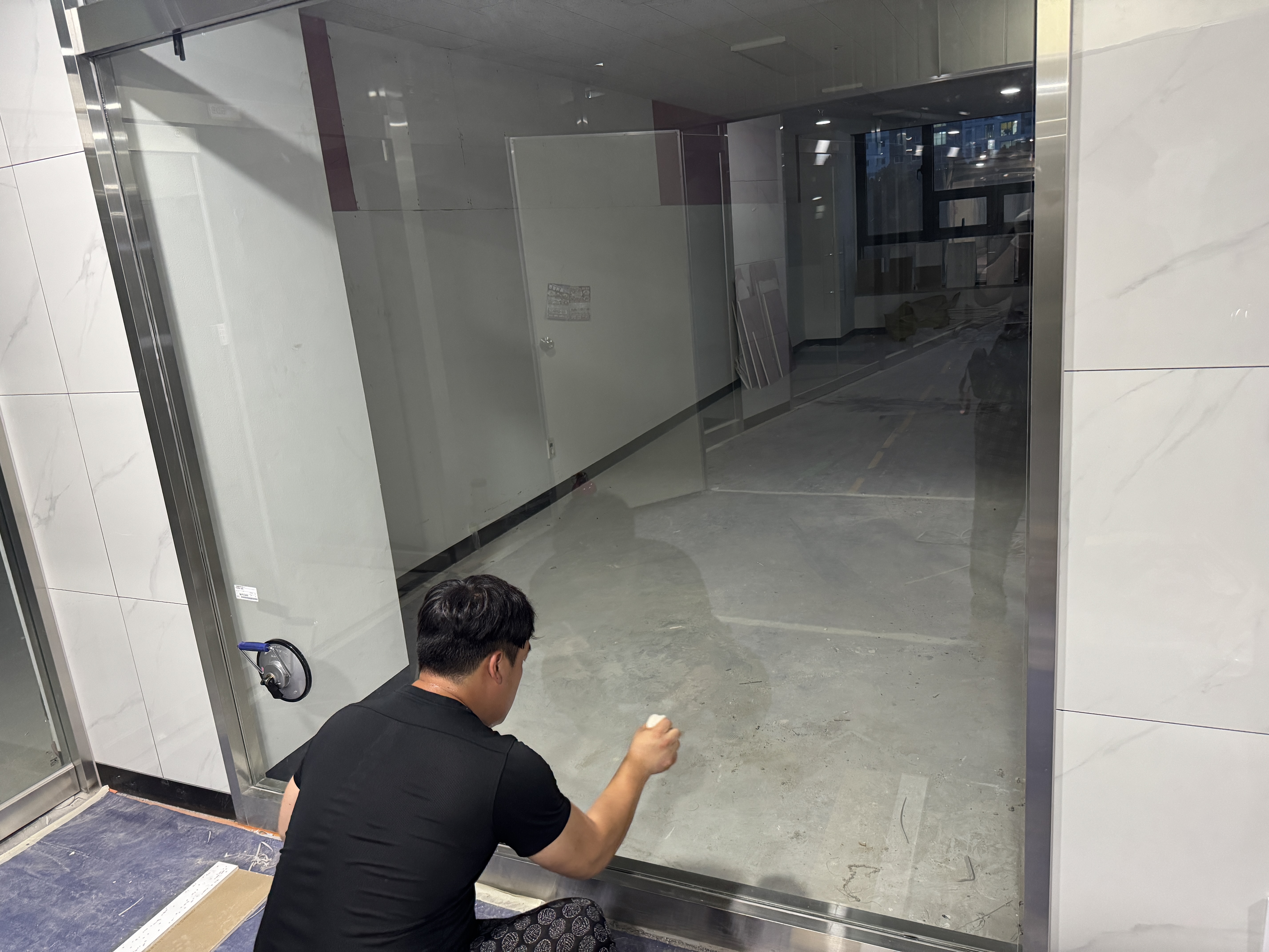 8미리 강화유리 상가 내부 강화유리 기스로 인해 교체건입니다